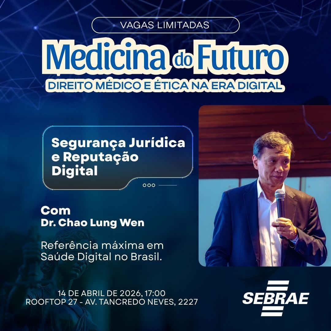No próximo dia 14 de abril de 2026, o SEBRAE-BA realizará a imersão “Medicina do Futuro – Direito Médico e Ética na Era Digital”, um encontro voltado à discussão dos principais desafios éticos, jurídicos e tecnológicos que impactam a prática médica contemporânea.